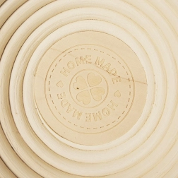 A rattan kelesztőkosár nélkülözhetetlen eszköz minden házi kenyérsütő számára. A természetes rattan kiemelkedik abban, hogy elvezeti a tészta felületi nedvességét, ami elősegíti a ropogós héj kialakulását és megőrzi a cipó stabil formáját. A finom, körkörös rovátkák tetszetős spirálmintát hagynak a kenyéren, a HOME MADE feliratú alj pedig egyedi „aláírást” ad a pékárunak.