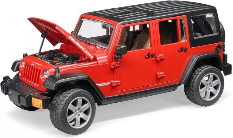A JEEP WRANGLER RUBICON terepjáró részletgazdag modellje 1:16 méretarányban valósághű kidolgozással és szórakoztató funkciókkal örömet okoz. Nyitható ajtókat, tetőt és motorháztetőt, kézi kormányzáshoz hosszabbított kormányt, valamint vonóberendezést kínál, amely kompatibilis a BRUDER utánfutókkal. Tartós ABS műanyag kivitel és akár 4 BWORLD figura beültethetősége garantálja a hosszan tartó, kreatív játékot 3 éves kortól.