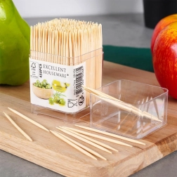 A praktikus, zárható adagoló tisztán tartja a fogvájókat és mindig kéznél van – otthon, étteremben és catering eseményeken. A kétoldalt hegyes végek tökéletesek korrekciókhoz, desszertdekorációkhoz vagy pálcikaként mini burgerekhez, olívákhoz és sajtokhoz.
