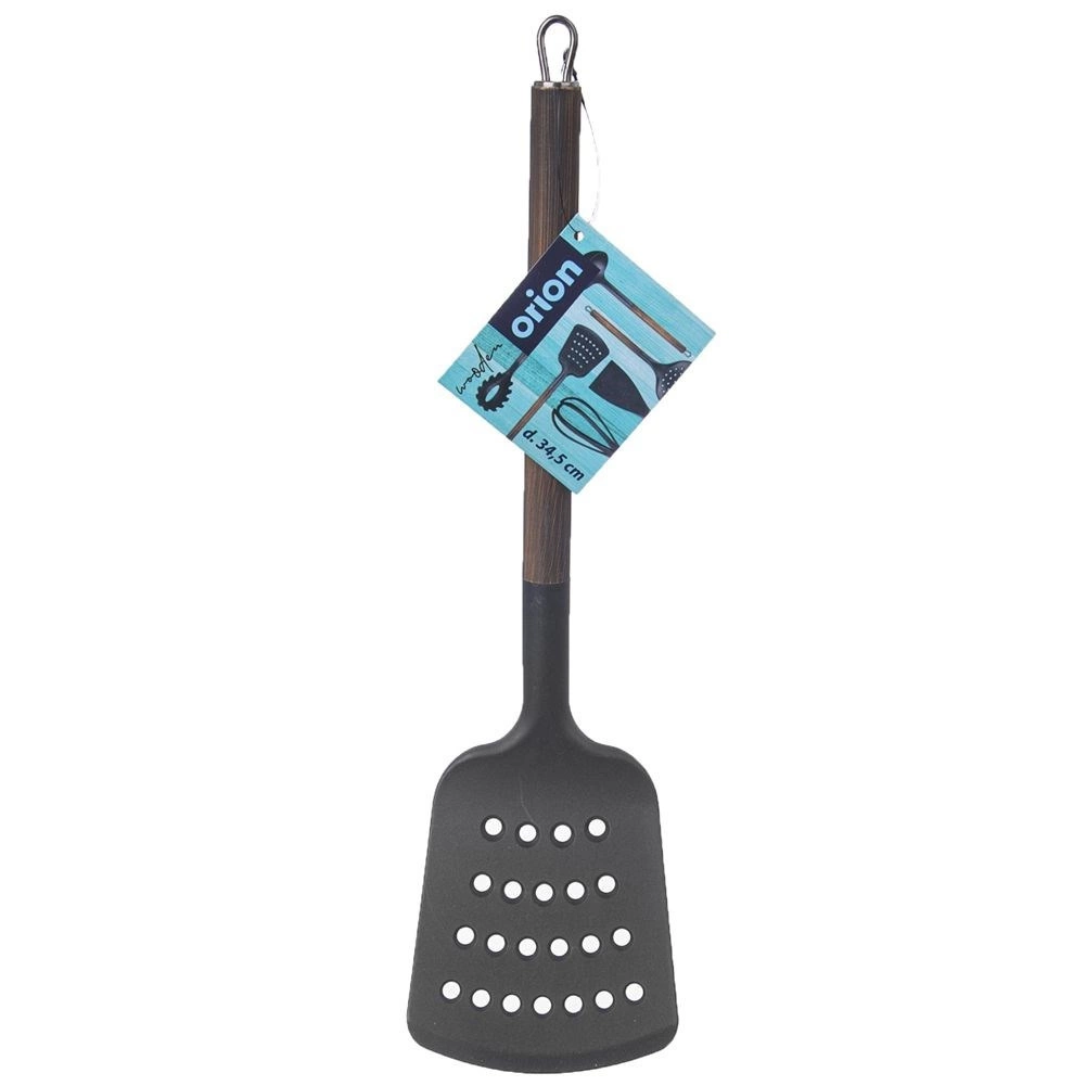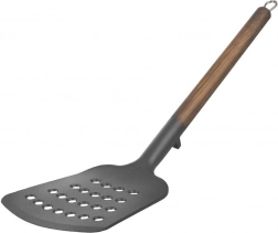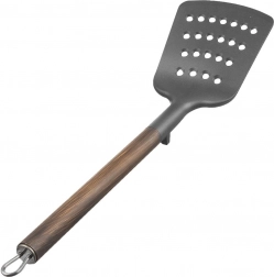 A WOODEN lapát 34,5 × 9 cm méretben készül, minőségi PBT termoplasztból, amelyre magas merevség és tartósság jellemző. A fa dekorú felületkezelésű fém nyél kényelmes fogást és elegáns megjelenést biztosít, amely illik a hagyományos és a modern konyhákhoz is.