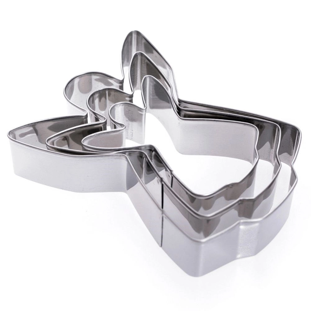 A készlet három angyal alakú kiszúrót tartalmaz fokozatos méretekben, látványos sütemény- és dekorációs kollekcióhoz.