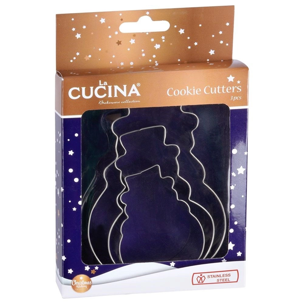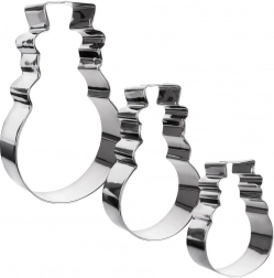 A három darab, hóember alakú, minőségi kiszúró minden sütésrajongónak örömet okoz. A tartós rozsdamentes acélból készült formák erősek, higiénikusak és készen állnak az évről évre ismétlődő ünnepi maratonra. A három praktikus méret (nagy: 13 × 8,5 × 2,5 cm, közepes: 10 × 7 × 2,5 cm, kicsi: 7,5 × 5 × 2,5 cm) látványos, rétegezett díszítést és egységes kekszkollekciót tesz lehetővé.