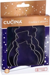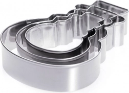A készlet nagy, közepes és kicsi hóember kiszúrót tartalmaz – ideális kekszszettekhez, rétegezett díszítéshez és különféle tésztákhoz.