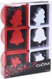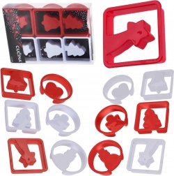 Készüljön a sütésre ezzel a praktikus szaggatókészlettel, amely minden karácsonyi süteménykedvelőnek örömet szerez. A négyzetes (7 × 7 cm) és kerek (Ø 7,5 cm) keretek kombinációjával könnyedén készíthet szép motívumokat és egyenletes kekszeket vagy mézeskalácsokat. A szaggatók minőségi, strapabíró műanyagból készültek fehér és piros színben, és megfelelő ápolás mellett sok szezonon át kitartanak.