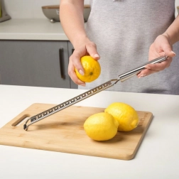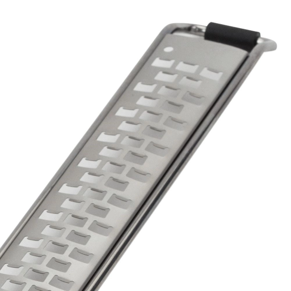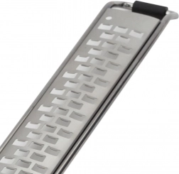 A 304-es rozsdamentes acélból készült, éles, finom fogak gyors és egyenletes reszelést biztosítanak citrusok héjához, kemény sajtokhoz és csokoládéhoz.