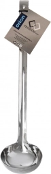 Praktikus konyhai merőkanál 45 ml űrtartalommal és 26 cm hosszúsággal, ideális levesek és szószok tálalásához. Minőségi rozsdamentes acélból készült, hosszú nyéllel a kényelmes fogásért és oldalsó kiöntőcsőrrel a pontos öntéshez. Könnyen tisztítható, és a nyél végén lévő nyílásnak köszönhetően felakasztható a konyhai relingre.