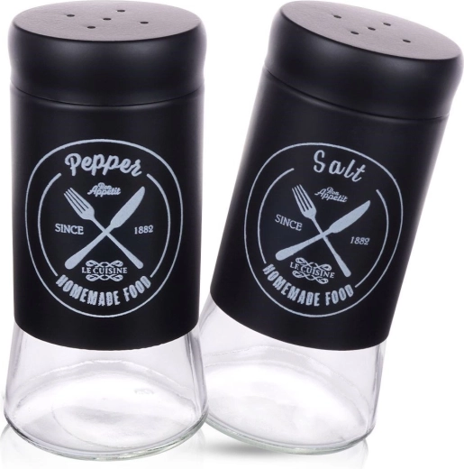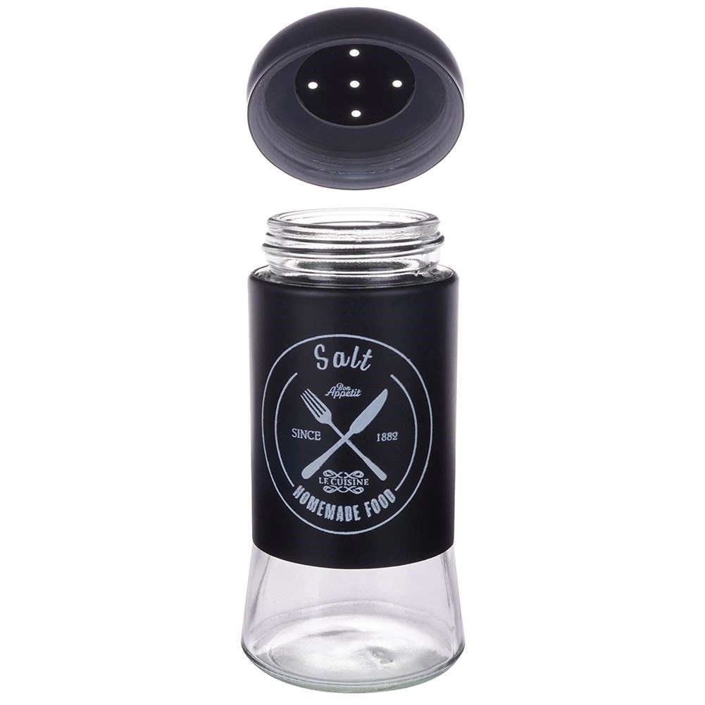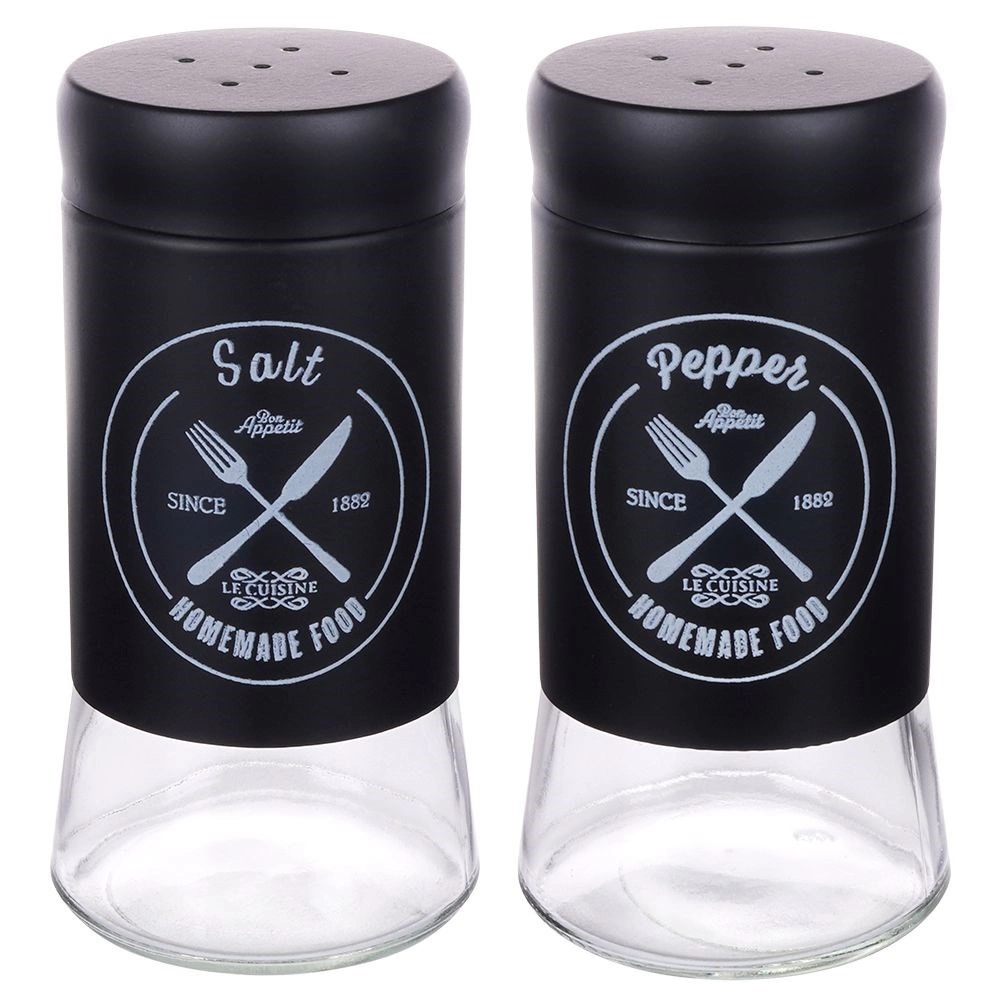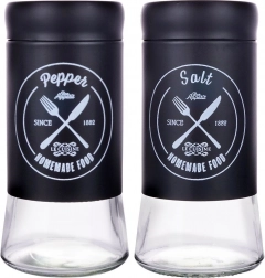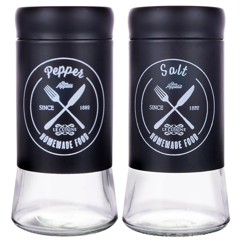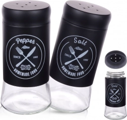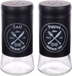 Elegáns, két darabból álló só- és borsszóró készlet tartós üvegből és fémből, fekete kivitelben. Az átlátszó alsó résznek és a jól látható feliratoknak köszönhetően mindig gyorsan felismerhető a tartalom. A praktikus, perforált kupak biztosítja a pontos adagolást szóródás nélkül és a könnyű használatot a konyhában és tálaláskor egyaránt. A modern design remekül illik az étkezőasztalra és a vendéglátásba is.