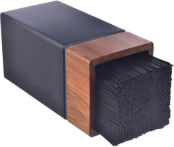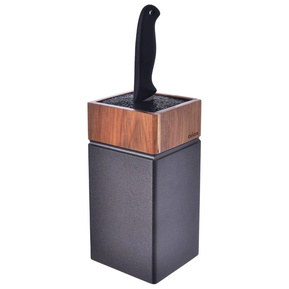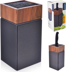A WOODEN késállvány masszív akáciafát ötvöz strapabíró, elegáns fekete műanyaggal. Az univerzális, műanyag szálas betét bármilyen formájú és méretű kés biztonságos behelyezését lehetővé teszi anélkül, hogy károsítaná az élt. A kompakt, 11 × 10,5 × 22,5 cm-es méreteknek köszönhetően bármely konyhapulton elfér, miközben biztonságos és átlátható tárolást nyújt.