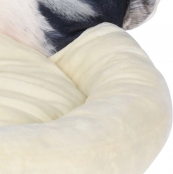 Az alsó rész strapabíró, vízálló fekete szövetből készült, amely jobban bírja az áthelyezést és a mindennapos használatot. A fekhely könnyű, könnyen hordozható, és játékos, kutyafejes előlapjával nemcsak kedvenc alvóhelye, hanem otthona dekoratív kiegészítője is lesz.