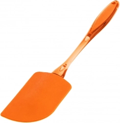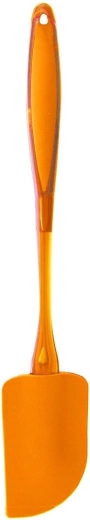 A spatula tartós, rugalmas szilikonból készült, amely nem szívja magába a szagokat vagy folyadékokat. Az ergonomikusan formázott, csúszásmentes nyél jól kézbe simul, a végén lévő nyílás pedig lehetővé teszi a felakasztást a relingre. A teljes, narancssárga kivitel stílusosan illeszkedik a modern és a hagyományos konyhákba is.
