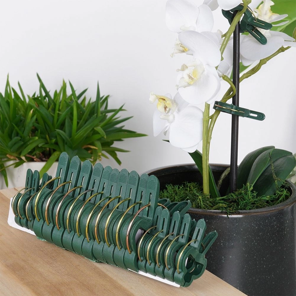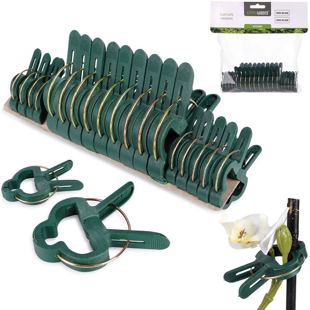 A csomag 20 klipszet tartalmaz: 10× 4,5 cm és 10× 6,5 cm. Könnyen igazítható vékonyabb és vastagabb szárakhoz, szobanövényektől a zöldségekig.