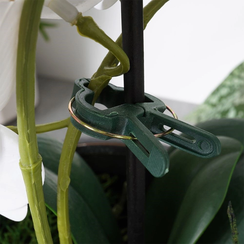 Praktikus 20 darabos növényklipsz készlet két méretben, amely stabil, mégis kíméletes tartást biztosít szobanövényeknek és kerti növényeknek egyaránt. Tartós műanyag kivitel fémrugóval a gyors, egykezes rögzítésért, ideális orchideákhoz, valamint paradicsomhoz, uborkához és babhoz. Többször használható, stabilizálja a szárakat, és támogatja a helyes növekedést sérülés nélkül.