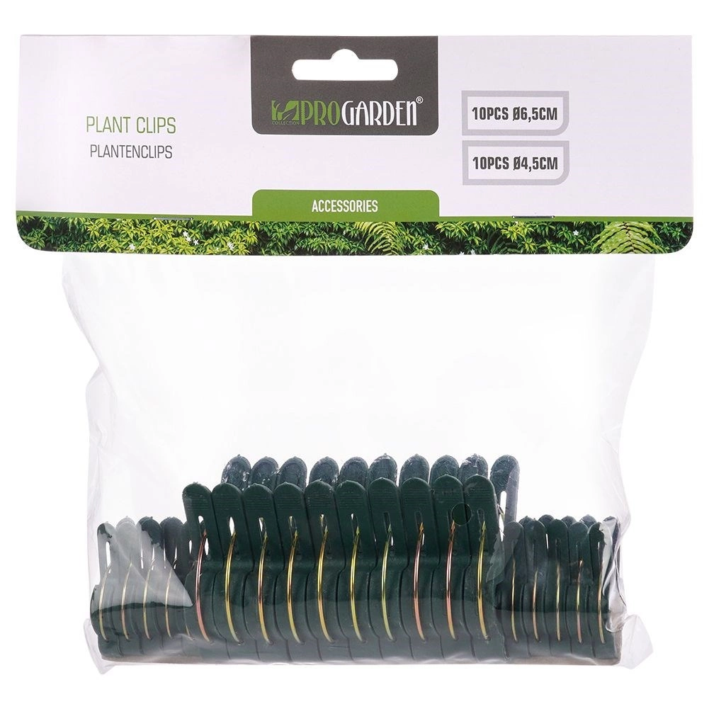 A PROGARDEN kerti klipszek két méretben (10× 4,5 cm és 10× 6,5 cm) megkönnyítik a növények kötözését és formázását otthon és a kertben. A biztos fogású rugós mechanizmus a szárakat pálcákhoz vagy rácsokhoz rögzíti anélkül, hogy összenyomná őket.
