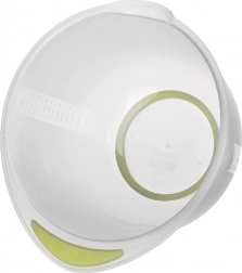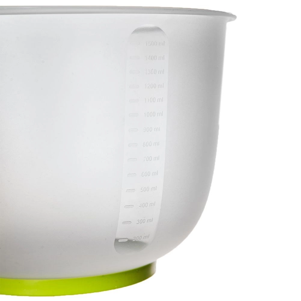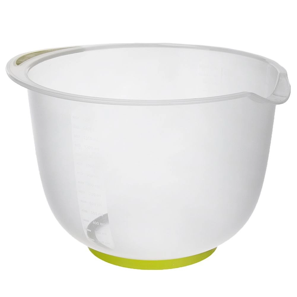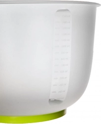 Ez a könnyű, mégis tartós, 1,5 liter űrtartalmú tál kiváló segítség a mindennapi főzéshez és sütéshez. A beépített mérce lehetővé teszi az alapanyagok pontos kimérését közvetlenül a tálban, így nincs szükség külön eszközre. A magas falak csökkentik a fröccsenést intenzív habverés közben.