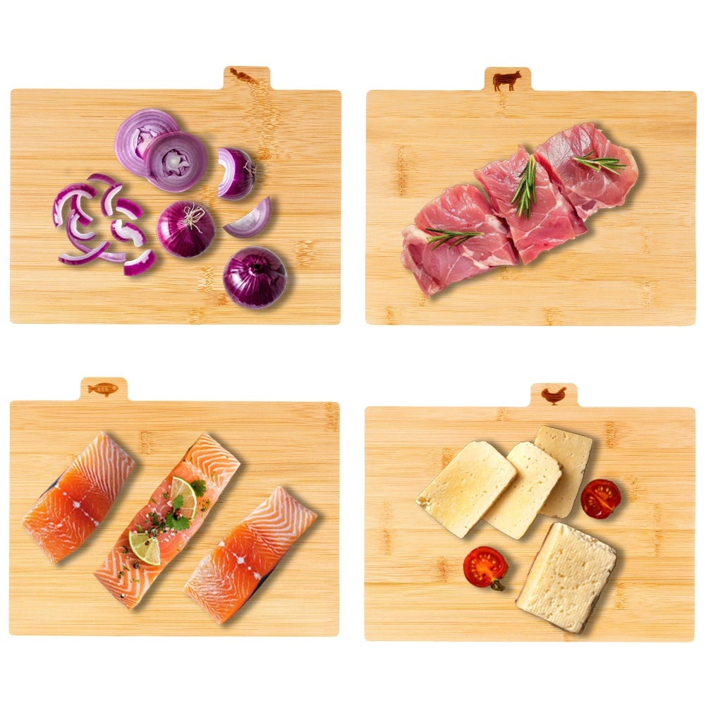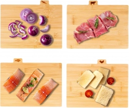 Minden deszkán fül található gravírozott ikonnal az adott élelmiszer-típushoz – zöldség, baromfi, hús és hal. Így könnyen megelőzhető a keresztszennyeződés, és tisztaságot tarthat a főzés során.
