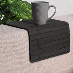 Stílusos, elegáns fekete színű bambusz asztali alátét, amely védi a felületet és egyben dekoratív elemként is szolgál. Feltekerhető kialakításának köszönhetően könnyen tárolható, természetes bambuszból készült, és hatékonyan védi a lapot a szennyeződésektől és a karcolásoktól. Remekül használható praktikus kartámla-alátétként is bögréhez vagy könyvhöz.