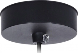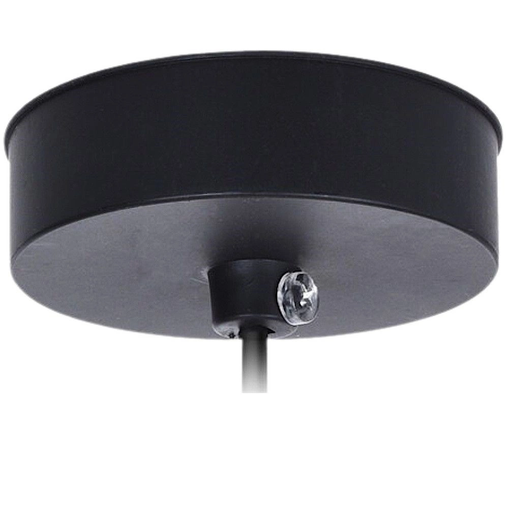 A matt fekete, kerek mennyezeti rózsa elegánsan eltakarja a vezetékezést és a rögzítést.