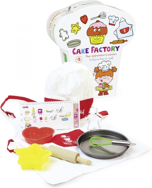 Vilac Tanulj meg sütni egy csodálatos készlet kis cukrászoknak, amely támogatja a kreativitásukat és képzeletüket a szerepjátékban. Tartalmaz mindent, ami a sütéshez szükségese—ekötényt, szakácssapkát, kiszúró formákat és további eszközöket.