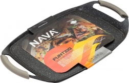 A 48 × 29 cm-es, univerzális FUNTZIO grilllap a simára és a bordázottra osztott felülettel maximális rugalmasságot kínál főzés közben. A tartós, ötrétegű gránit bevonat tapadásmentes, PFOA- és PTFE-mentes, minden tűzhelytípushoz használható, beleértve az indukciót is, továbbá sütőben (a szilikon huzatok nélkül) és grillen is alkalmazható. A gyors és egyenletes hőelosztásnak köszönhetően energiát takarít meg, és megkönnyíti az egészséges, ízletes ételek elkészítését.