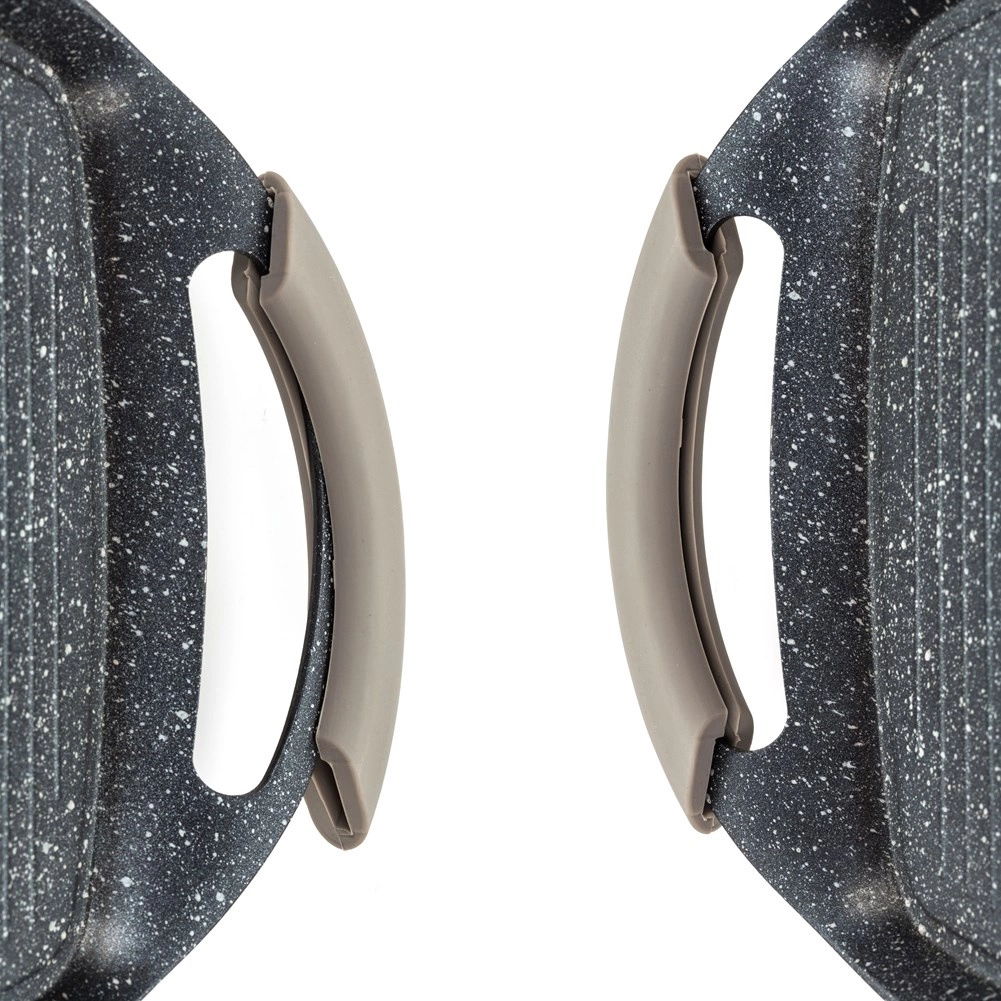 Levehető szilikon huzatok a biztos fogásért. Alkalmas gáz-, elektromos, kerámia-, halogén-, indukciós tűzhelyre, grillre és sütőbe (huzatok nélkül).
