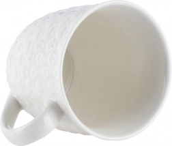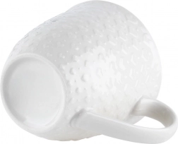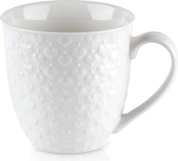 Élvezze kedvenc kávéját vagy teáját a nagy, 580 ml-es űrtartalomban. Ez a fehér kerámia bögre domború szívecskés dekorral ötvözi az elegáns megjelenést és a praktikus használatot a mindennapi pihenéshez. Az ergonomikus fül kényelmes fogást és biztos tartást nyújt.