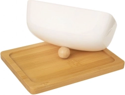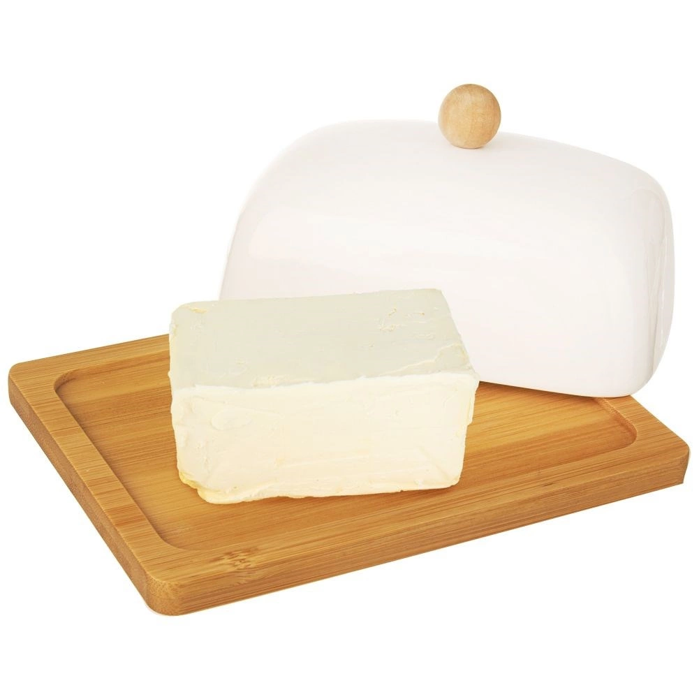 Fedezze fel az időtlen dizájn és a funkcionalitás kombinációját. A fehér porcelán fedél nagyszerűen illik a természetes bambusz tálcához, amely mart peremmel biztosítja a stabil illeszkedést. A vajtartó hűtőbe és asztalra egyaránt ideális – frissen tartja a vajat, megóvja a kiszáradástól és a nem kívánt szagoktól.