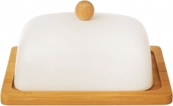 Elegáns fehér porcelán vajtartó bambusz tálcával, amely megvédi a vajat a szennyeződésektől és szagoktól, tovább frissen tartja, és szépen kiegészíti az asztalt. A fa fogantyús fedélnek köszönhetően könnyen nyitható, praktikus, higiénikus és stílusos választás a mindennapi tálaláshoz.