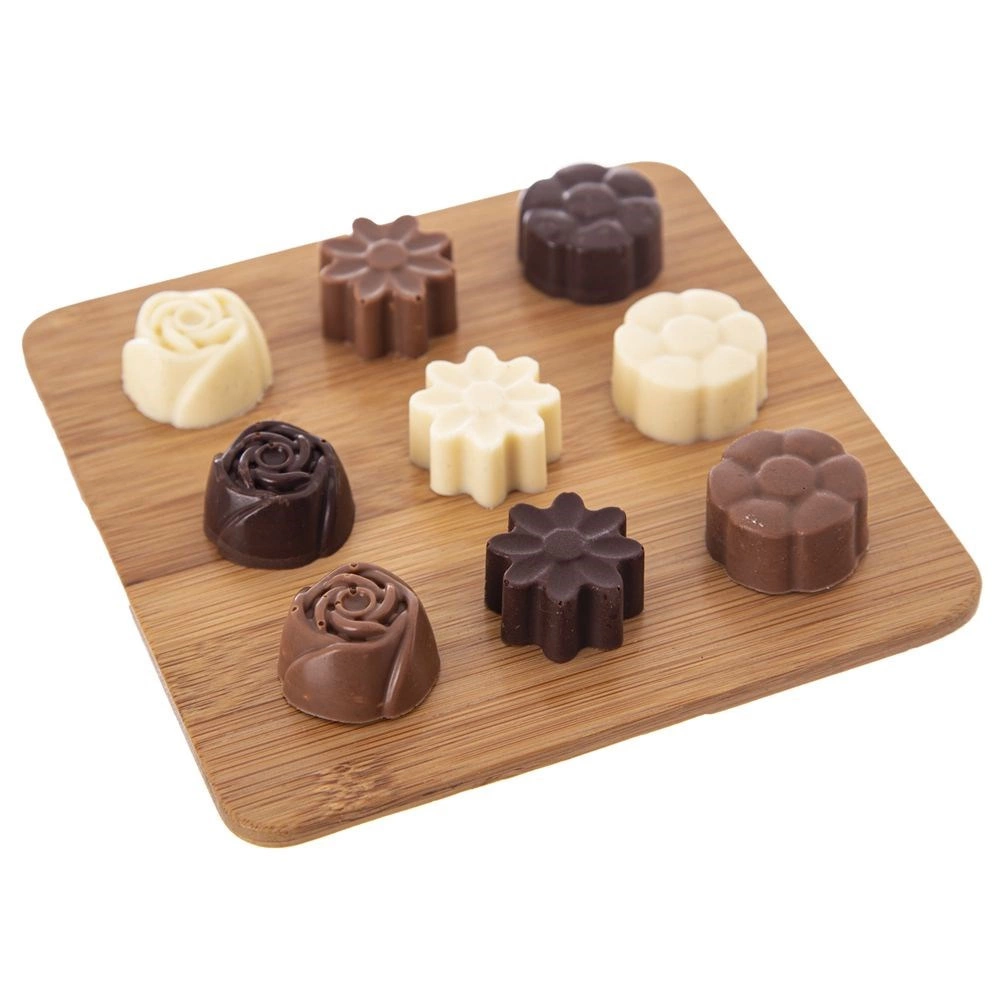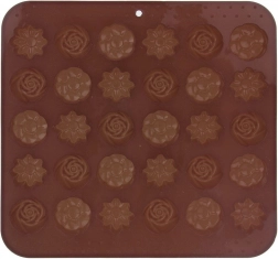 Fedezze fel a házi készítésű csokoládépralinék és mini kekszek örömét. A Sillinie szilikonforma 21 × 20,5 cm-es méretben 30 mélyedést kínál, kb. 2,8 × 2,8 cm méretben, három elegáns virágmotívummal. A minőségi szilikonnak köszönhetően a tészta nem tapad le, az édességek könnyen kifordíthatók, és a forma nem veszi át a szagokat és ízeket.