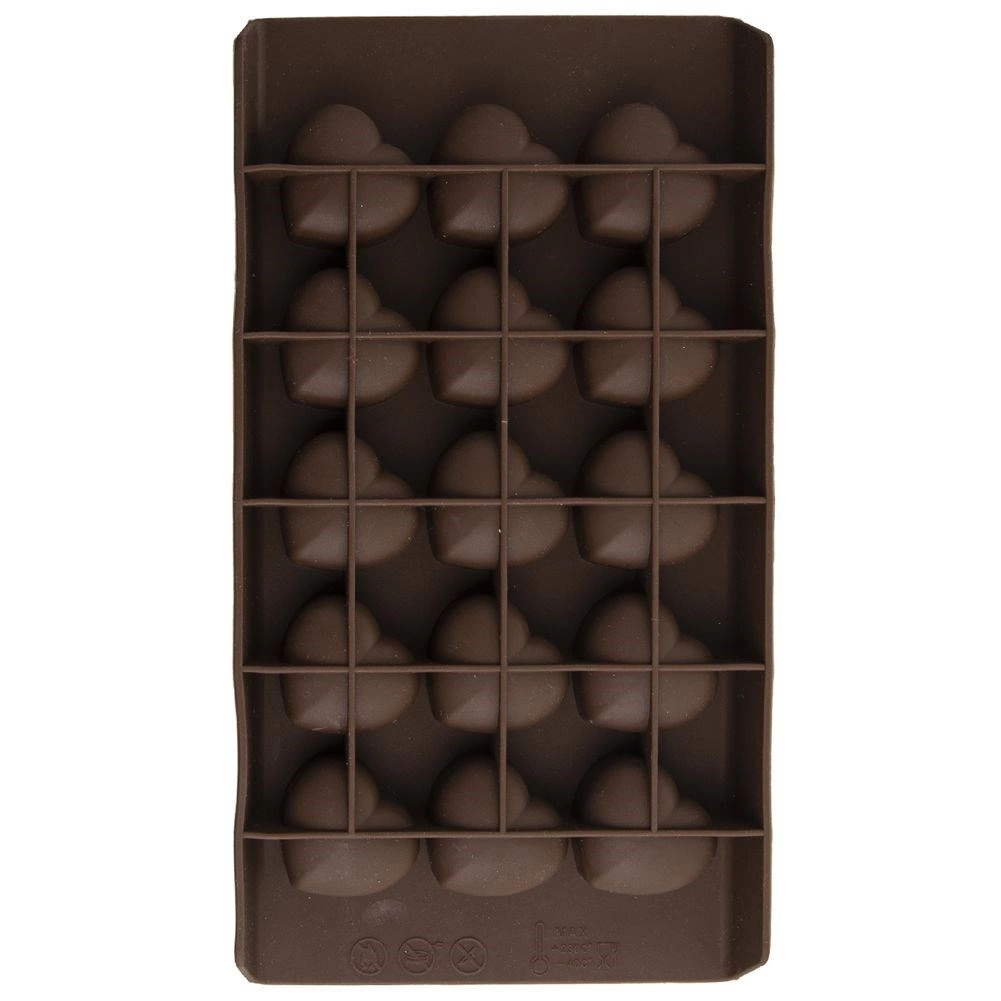 Ez a minőségi, barna színű szilikon forma kiváló választás házi csokoládé pralinék, apró sütik vagy édességek készítéséhez szívecske formában. A tapadásmentes felületnek köszönhetően nem szükséges kikenni vagy beszórni, az elkészült darabok pedig könnyen kifordíthatók.