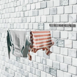 A telepítés gyors és egyszerű – elég szemközti falakra felszerelni, legfeljebb kb. 360 cm távolságig. Összezárt állapotban minimális helyet foglal, és megőrzi a rendezett belső megjelenést. Kiválóan alkalmas fürdőszobába, mosókonyhába vagy szárítóhelyiségbe.