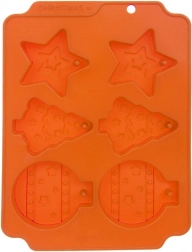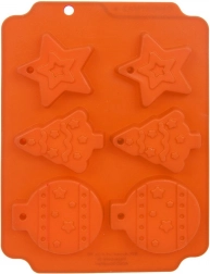 A karácsonyi szilikon forma akár 6 édesség sütését is lehetővé teszi csillag, fenyőfa és gömb alakban. Rugalmas, tapadásmentes és hőálló -40 °C-tól +220 °C-ig, így használható sütőben, mikróban és fagyasztóban is. A nyílásoknak köszönhetően a kész sütiket felakaszthatja a karácsonyfára, a forma pedig mosogatógépben is könnyen tisztítható.