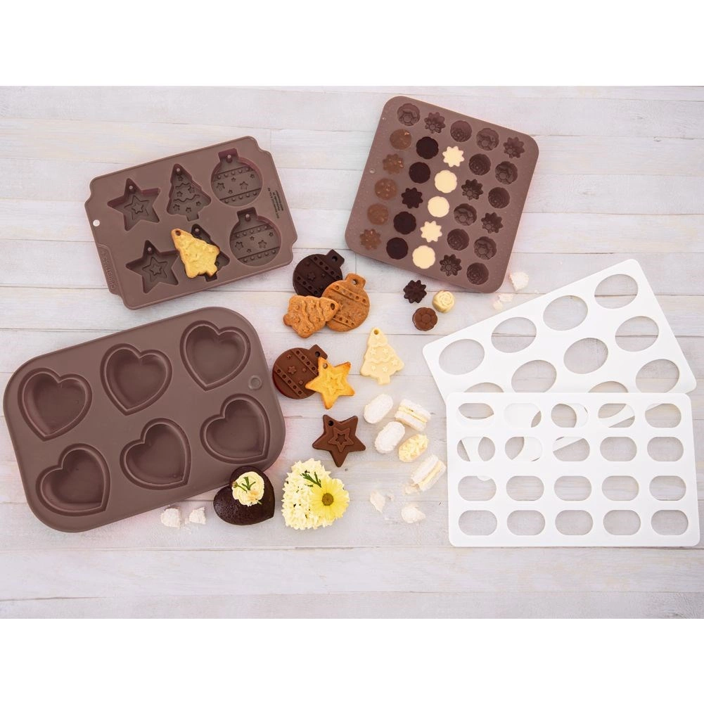 A forma könnyű, elasztikus és helytakarékos. Kiválóan vezeti a hőt, nem veszi át a szagokat vagy ízeket, és a fagyasztótól a forró sütőig széles hőmérséklet-tartományt bír. A kész finomságokat a nyílások révén ehető díszként felakaszthatja a karácsonyfára.