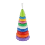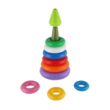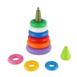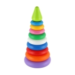 Színes összerakós piramis gyűrűkkel ideális játék a legkisebbek számára. A gyűrűk összerakása fejleszti a gyerekek motorikus képességeit és kéz koordinációját.