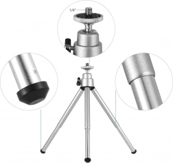 Ez a kompakt állvány minőségi alumíniumból készült, amely biztosítja a magas tartósságot és a szerkezet szilárdságát. Tökéletes makrófotózáshoz a három irányban mozgatható fej segítségével bármilyen pozícióba állítható. Az univerzális 1/4''-es menetes csatlakozás kompatibilis a legtöbb kamera és fényképezőgép típusával.