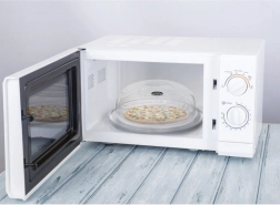 A magas, kupolaszerű fedél megakadályozza a fröccsenéseket, és tisztán tartja a mikro belsejét még szószok vagy zsírosabb ételek melegítésekor is.
