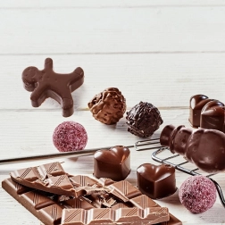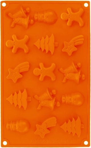 Karácsonyi motívumokkal díszített szilikon sütőforma, amellyel egyszerre akár 15 darab aprósütemény vagy praliné készíthető öt formában: emberke, fenyőfa, hóember, csillag és csengő. -40 °C-tól +220 °C-ig hőálló, sütőbe, mikróba és fagyasztóba is tehető, és mosogatógépben mosható. A tapadásmentes szilikonnak köszönhetően a tészta könnyen kifordítható, a forma pedig nem veszi át a szagokat és ízeket.