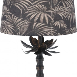 Ez a rendkívül stílusos asztali lámpa a klasszikus eleganciát és a modern dizájnt ötvözi. A fekete textilernyő arany leveles mintával kellemes hangulatot teremt, és karakteres dekorációs elemmé válik a nappaliban, hálószobában, dolgozószobában vagy irodában. A patinás hatású fém talp vintage karaktert és stabil érzetet ad a lámpának.