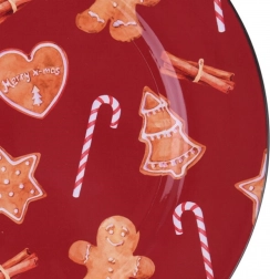 Varázslatos hangulatot kölcsönöz az ünnepi asztalnak ez a dekoratív piros alátét 33 cm átmérővel. Tartós kivitele és a mézeskalácsot, fahéjat és nyalókát ábrázoló karácsonyi motívum remekül kiegészít bármilyen terítést. Sokoldalú – tálcaként vagy ünnepi díszkompozíciók alapjaként is használható, és könnyen tisztítható nedves ruhával.