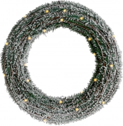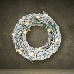 Varázslatos ünnepi hangulatot teremthet ezzel a dekoratív koszorúval, amely hűen utánozza a havas tűleveleket, és finoman ragyog a 30 meleg LEDnek köszönhetően. Az elemes működésnek hála bárhová elhelyezhető – ajtóra, kandalló fölé, ablakba vagy polcra – látható kábelek és bonyolult szerelés nélkül.