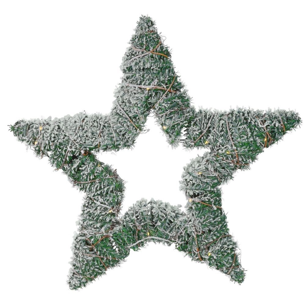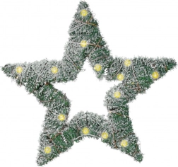 Stílusos karácsonyi dekoráció csillag formában, 58 cm átmérővel és meleg fehér LED világítással (40 LED). A valósághű, hóval fedett tűlevelek varázslatos hangulatot teremtenek, a csillag pedig felakasztható vagy lefektethető. A praktikus időzítő funkció gondoskodik az automatikus be- és kikapcsolásról.