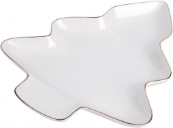 Teremtsen lenyűgöző ünnepi asztalt a karácsonyfa alakú porcelántányérral. Az időtálló fehér, arany peremmel kiemeli a finomságokat, és elegáns hangulatot ad az étkezésnek a téli és karácsonyi szezonban is.
