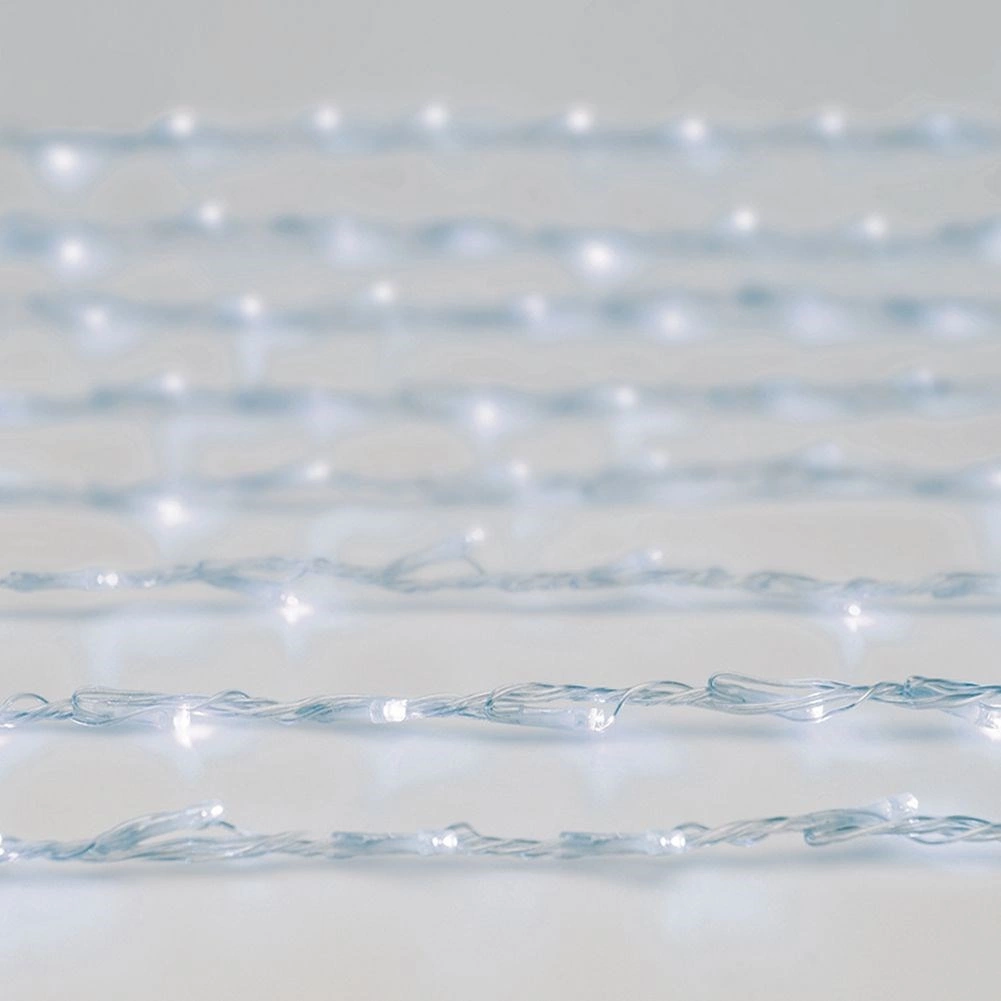 A világítás hálózatról működik, és a 5 m hosszú tápkábelnek köszönhetően gond nélkül elhelyezhető a kívánt helyen. Az IP44 védelem ellenállóvá teszi az időjárási hatásokkal szemben, így kültéri és beltéri használatra egyaránt alkalmas. Az átlátszó vezetékek hagyják érvényesülni a fényt, és diszkréten mutatnak homlokzaton és beltérben is.