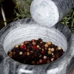 A mozsár természetes gránitból készült, ezért az egyes darabok színe és mintázata enyhén eltérhet – minden darab egyedi. Egyszerű karbantartásának és a mosogatógépes tisztítás lehetőségének köszönhetően minden konyha praktikus segítője.
