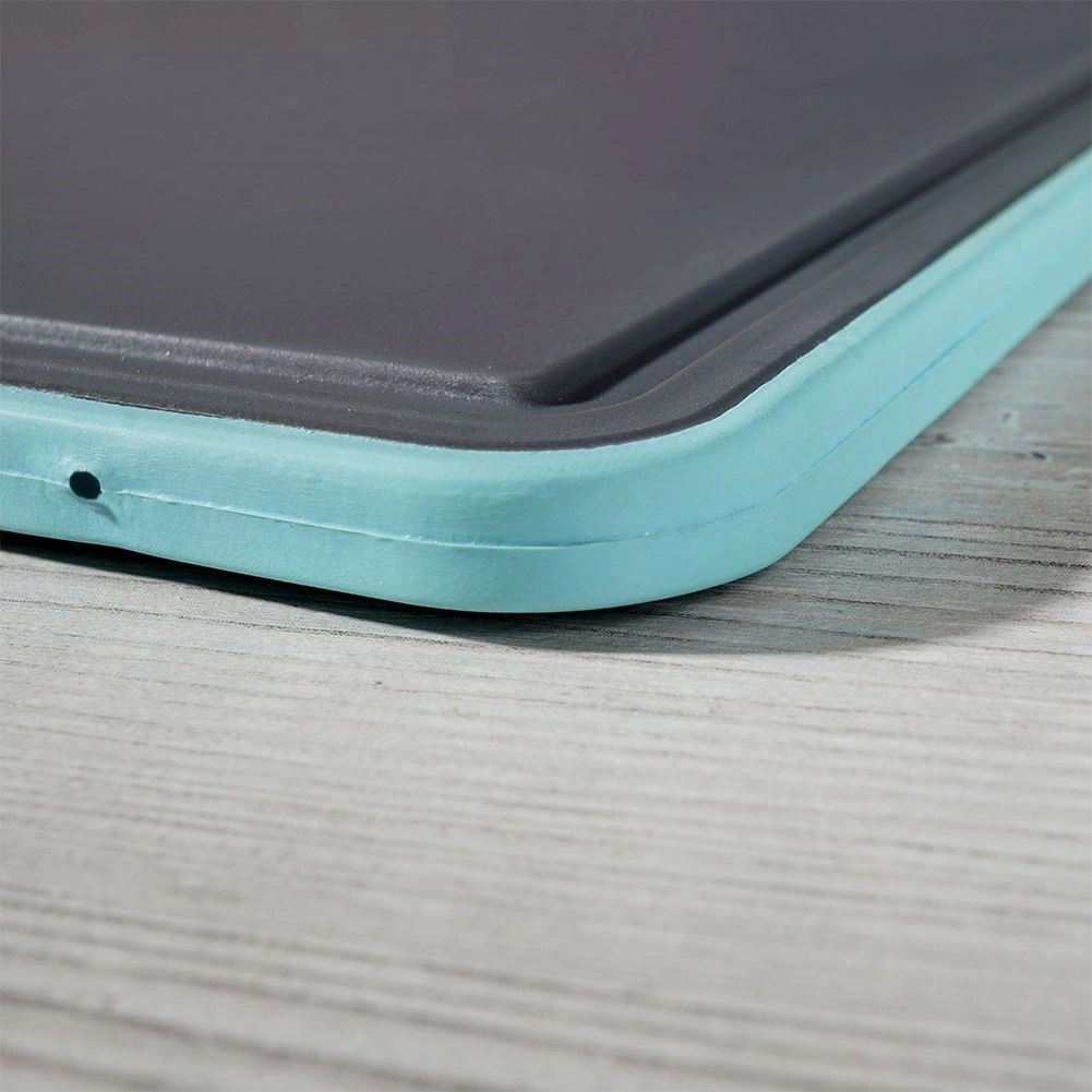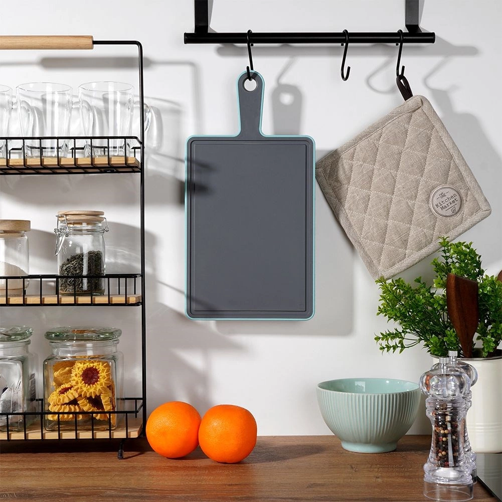 Praktikus vágódeszka mindennapi konyhai használatra. Téglalap alakú, csúszásgátló peremmel és kényelmes fogantyúval a hordozáshoz és felakasztáshoz. Az okos léelvezető vájat felfogja az ételekből kifolyó leveket, így a munkapult tiszta marad.