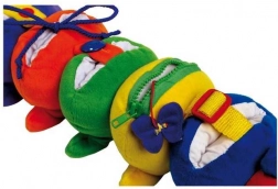 Ez a színes textil százlábú úgy lett megtervezve, hogy motiválja a gyerekeket a felfedezésre és a tanulásra. A hatféle záródásnak köszönhetően a gyerekek lépésről lépésre sajátítják el azokat a gyakorlati műveleteket, amelyeket a mindennapi életben is hasznosítanak. A kellemes, plüss felület ölelgetésre csábít és ösztönzi az érzékszervi észlelést.