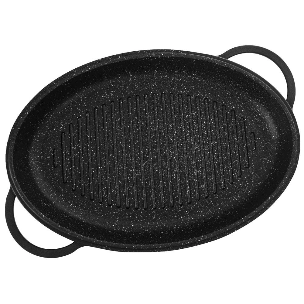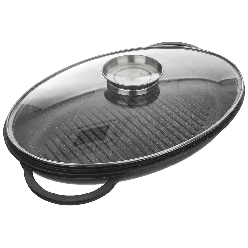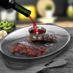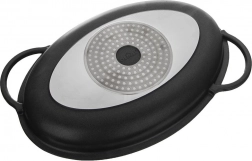Fedezze fel a sokoldalú grillserpenyőt, amely a serpenyő és a tepsi funkcióit egyesíti. Az ovális forma, a megemelt bordák látványos grillmintát és a felesleges zsír elvezetését biztosítják, az üvegfedő integrált adagolója pedig lehetővé teszi bor vagy alaplé hozzáadását a fedő felemelése nélkül. Ideális húsokhoz, halakhoz és zöldségekhez, pirításhoz, pároláshoz és sütéshez.