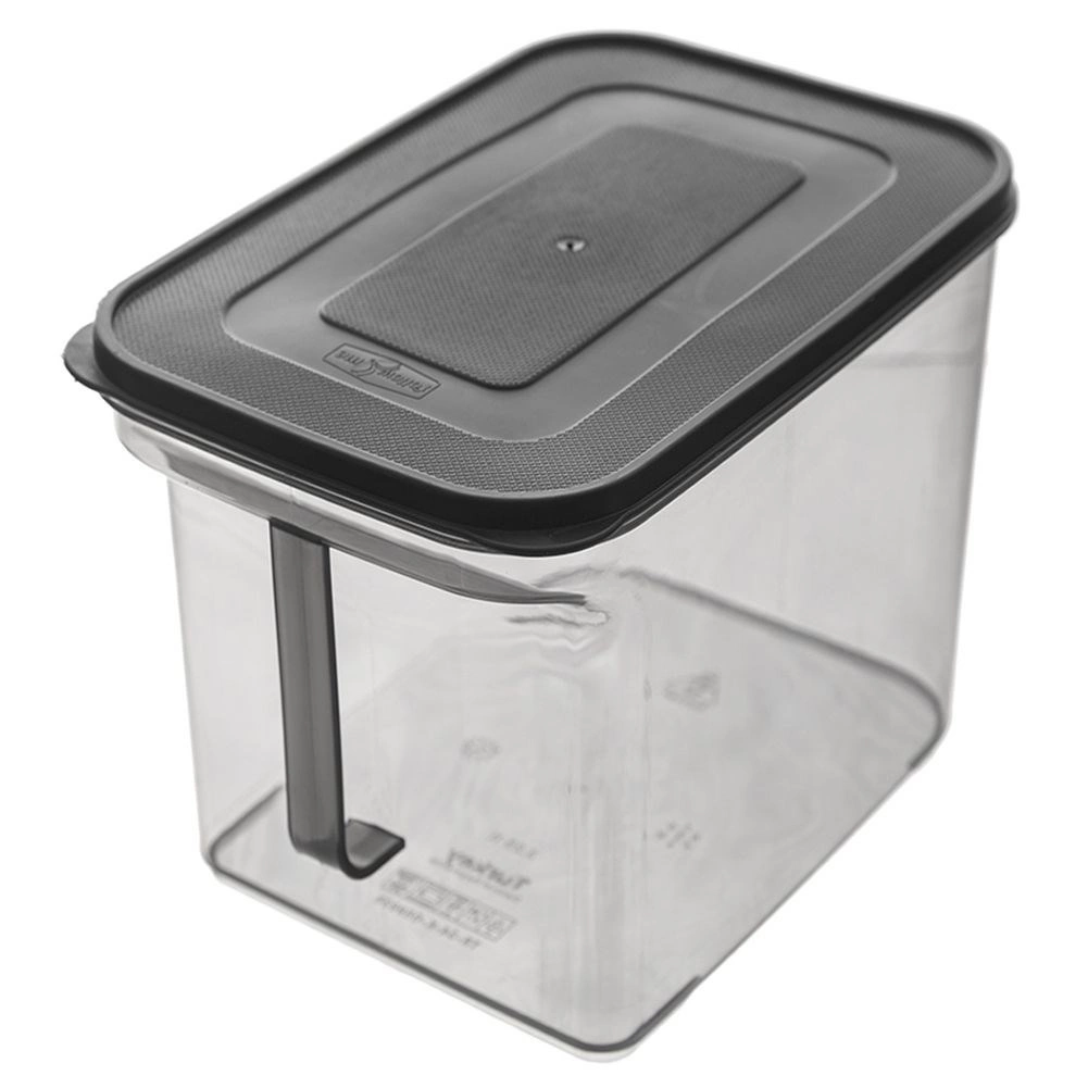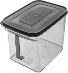 Praktikus, 1,7 l űrtartalmú szóródó élelmiszer-tároló edény tömítő fedéllel, hogy az alapanyagok tovább frissek maradjanak. Az átlátszó testnek köszönhetően azonnal átlátható a tartalom, az oldalsó kényelmes fogantyú megkönnyíti a kezelést, a légmentes zárás pedig véd a nedvességtől és a szagok átvételétől. Alkalmas mosogatógépbe, mikrohullámú sütőbe (fedél nélkül), hűtőszekrénybe és fagyasztóba.
