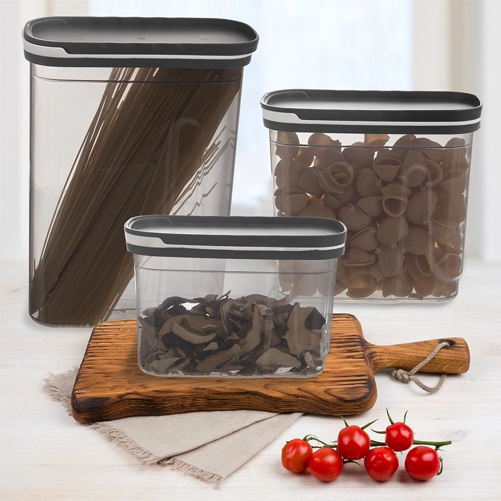 Tartson tökéletes rendet a spájzban liszt, cukor, rizs, tészta vagy gabonapehely tárolásával. Űrtartalom 2,7 l, karcsú forma 19,5 × 9,5 × 26 cm és átlátszó falak az egyszerű készletellenőrzéshez. A BPA-mentes, biztonságos anyag egészségre ártalmatlan, és -10 °C-tól +95 °C-ig ellenáll a hőmérsékletnek.