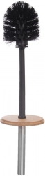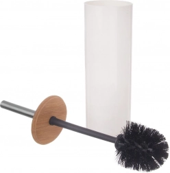 Ez a praktikus és stílusos WC-szett mindent kínál, amire a fürdőszobában szükség lehet: stabil, zárt kialakítású tartót, tartós kefét sűrű fekete szálakkal és kényelmes, matt rozsdamentes acél nyelet. A természetes bambusz fedél meleg hangsúlyt ad, és eltakarja a kefét a letisztult enteriőrért.
