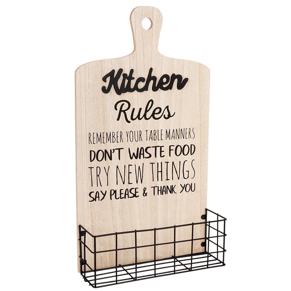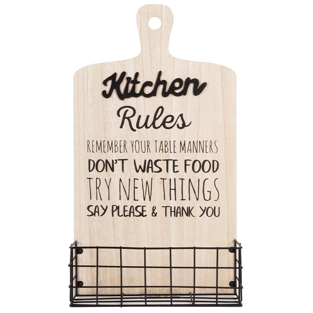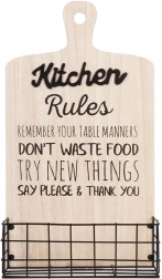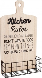 Stílusos, deszka formájú fali polc, amely ötvözi a dekorativitást és a praktikusságot. Porszórt fém kosara alkalmas fűszerek és apróságok tárolására, a masszív MDF lap pedig stabilitást ad. Loft stílusú konyhába illik. Tartós, stabil, kiváló a konyhai rendszerezéshez, és eredeti dekorációként is megállja a helyét.